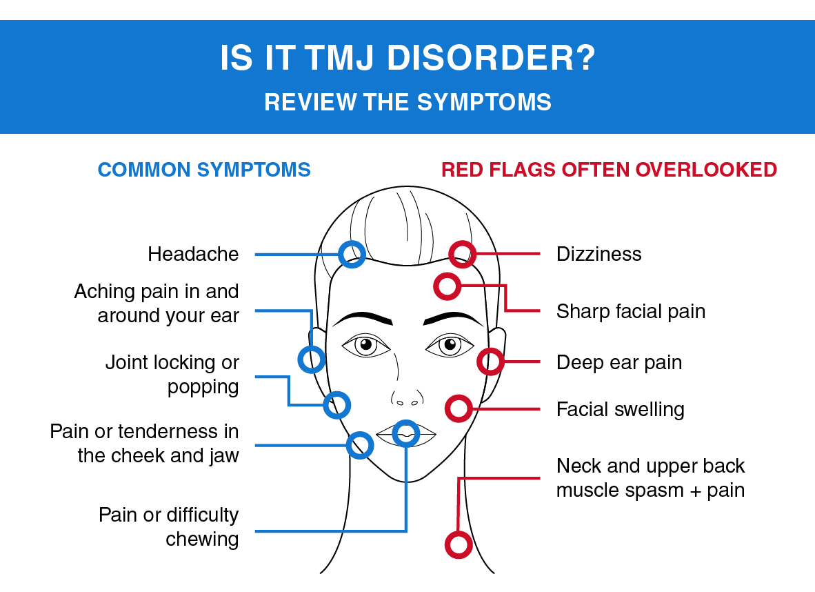 - pain in the jaw joint or limited movement
