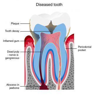 Below shows a healthy and diseased tooth:
